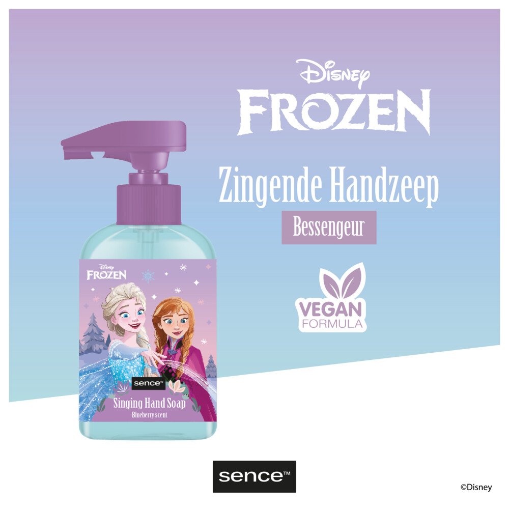 Grojantis rankų muilas Ledo šalies herojais. Su Anos ir Elzos atvaizdu. Sence Disney Frozen firmos.